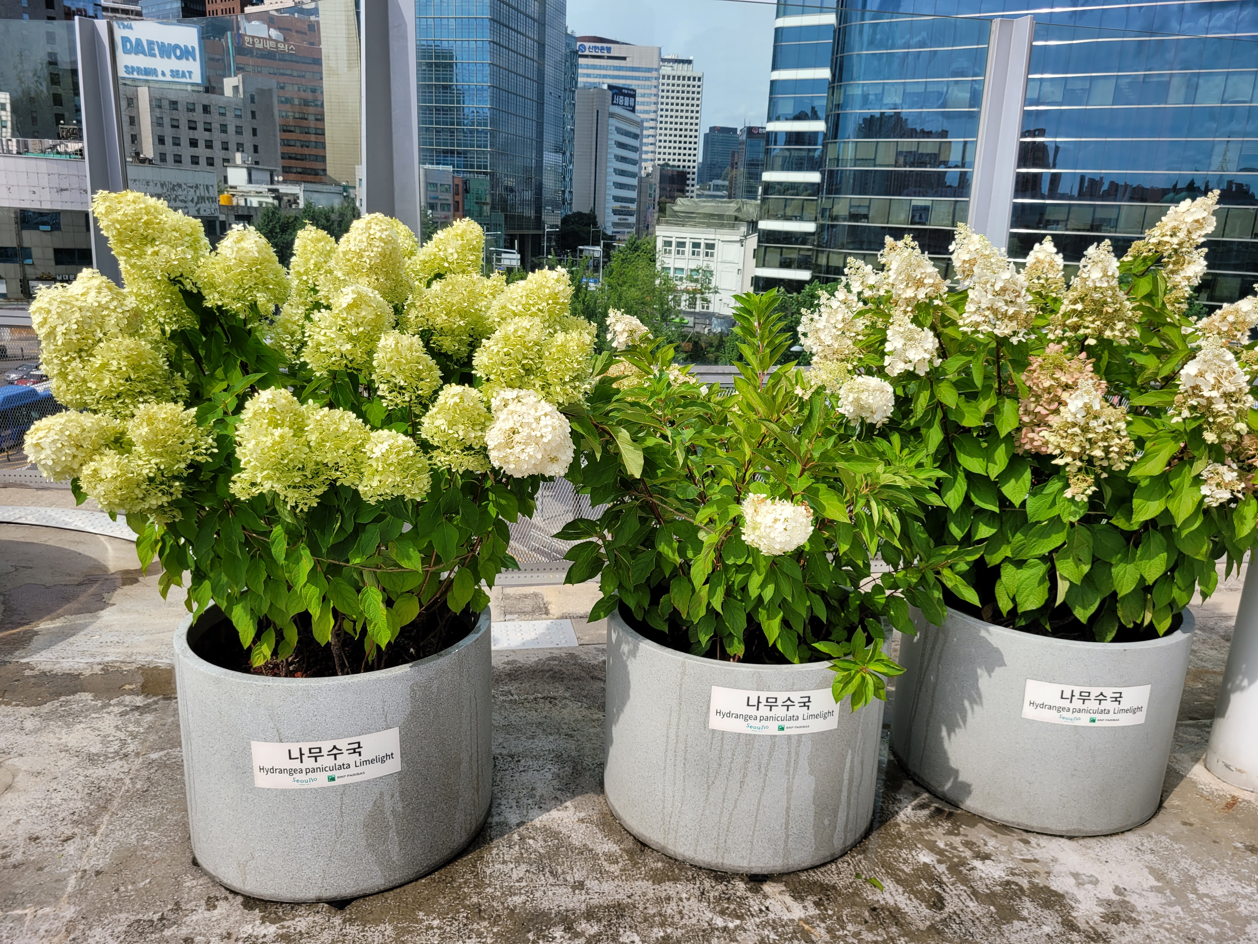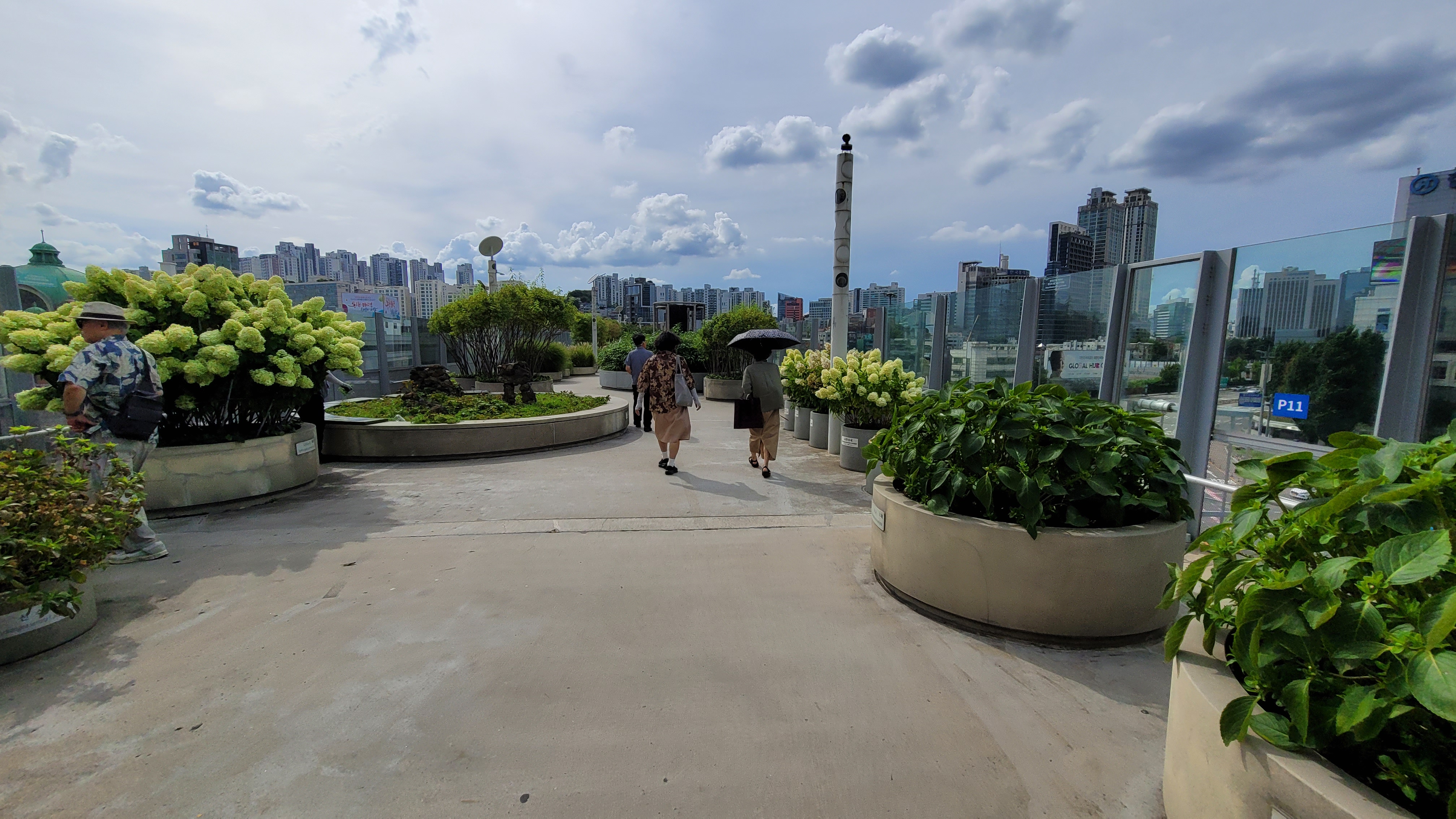 생각보다 서울로 7017 위로 올라가니 나무들이 시멘트화분에 심어져서